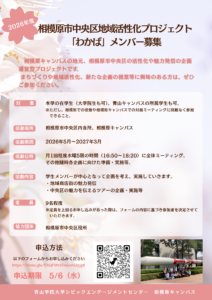 相模原キャンパスの地元、相模原市中央区の活性化や魅力発信の企画運営型プロジェクトです。