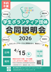 AOGAKUボランティアネットワーク加盟団体による合同説明会です。